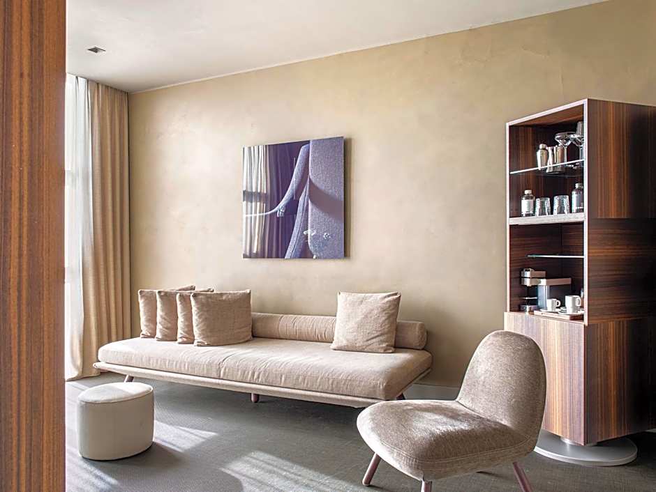 This soundproofed and air-conditioned room features a feather bed, soft pillows and satin linen, as well as a walk-in wardrobe, smart TV and mini bar. The bathroom includes a rain shower and organic toiletries.